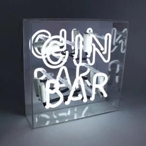 Add some fun to your home bar with the Neon Gin Bar Sign. Encased in a glossy acrylic box with a mirror back and with hand crafted neon glass these lights are idea for use in home spaces. The perfect statement light, this glass neon light won’t get hot and has a low power consumption at 12 -24W.