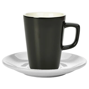• Stylish latte mug with a chic black colouring and white saucer